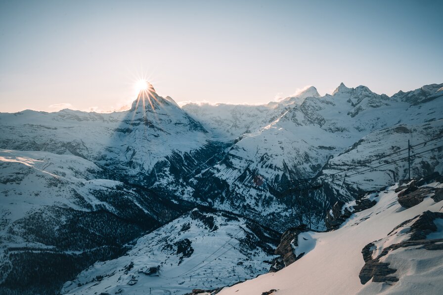 und Zermatts Gipfel im Glanz des Winters zeigt,