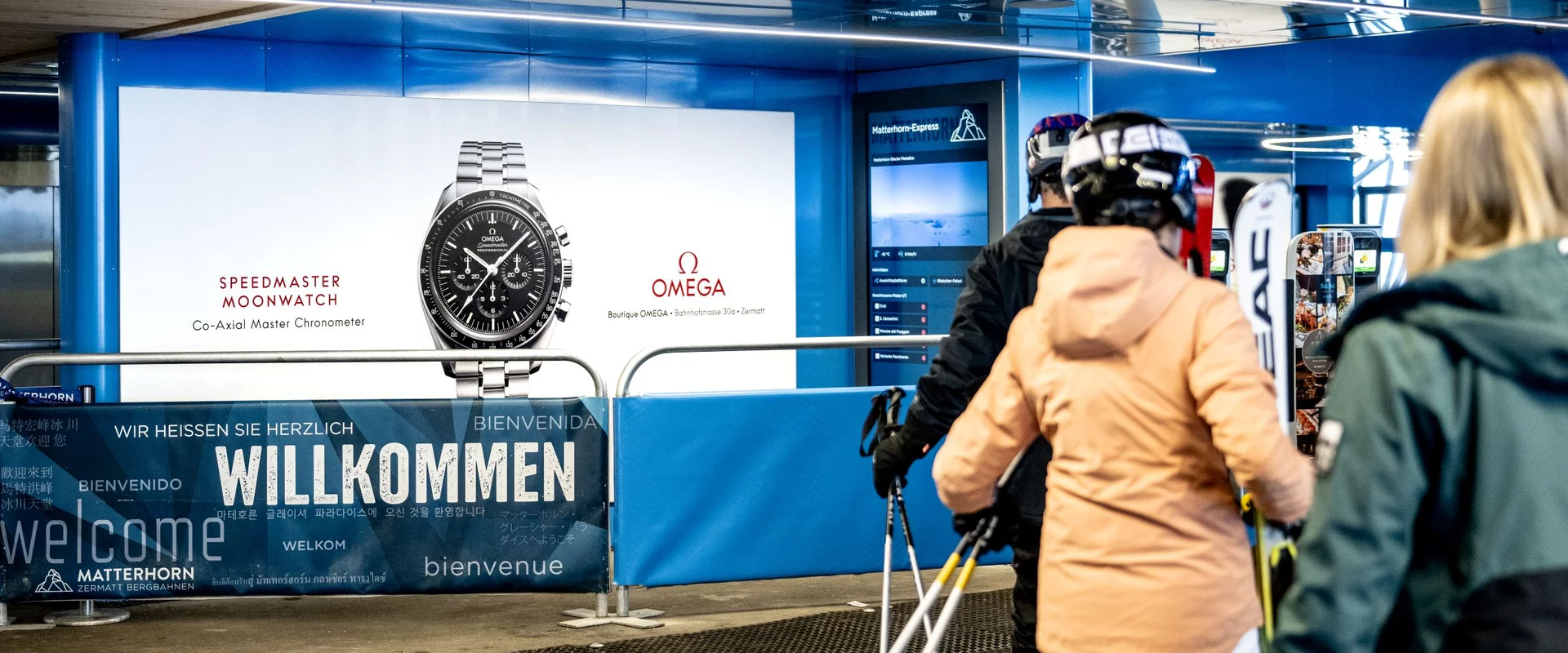 Publicité sous la forme d'un spot (3 x 10 secondes en 2 minutes) ou d'images animées sur les écrans du système d'information visuelle en réseau de la station de ski de Zermatt. Divertit l'invité dans les endroits les plus fréquentés avec la plus grande attention garantie pour votre publicité !